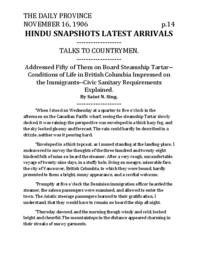 | Description / Synopsis | Description / Synopsis Describes the initial arrival of a group of South Asian immigrants from the steamship Tartar |