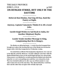 This article discuss and speculates on the conditions aboard the Komagata Maru, the hunger strike being carried out by the passengers on board, and Gurdit Singh--s request that the passengers be allowed to disembark and go to a temporary shelter while waiting for the court appeal to be heard. Gurdit Singh offers to pay for housing and feeding the passengers while they wait and also states that he will pay the remainder owing to the owners of the steamship when the passengers are allowed to go ashore. The article discusses several objections to the proposal and also speculates on Gurdit Singh--s plans to travel back to India to rally support for the passengers once they have been allowed to come ashore. |
