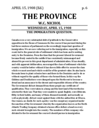 This is an editorial discussing Canadian immigration laws and criticizing the liberal government for mismanaging immigration policy while praising the conservative opposition for pursuing more --effective-- legislation which would allow the government more discretion in who they encouraged or allowed to immigrate. |