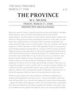 Nichol, W. C. “Ineffective regulations”. Nonprojected graphic, Reporting. South Asian Migration: 1906-1915. Vancouver, B.C.: The Province, March 27, 1908. https://ufv-i2.arcabc.ca/south-asian-migration-1906-1915/ineffective-regulations.
