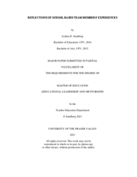 | Abstract | Abstract The present study examines the perceptions of School Based Team (SBT) members at a Lower Mainland secondary school in British Columbia through the lens of team leadership and collaboration. Using a phenomenological approach, six active SBT members with more than two years of experience reflected on their experiences on SBTs. They discussed how its functioning could be improved moving forward. The results indicated that: participation on a SBT may impact one’s professional identity, a clear structure and purpose during SBT meetings is a key to success, meetings need to be collaborative for members to engage, and it is essential for SBTs to be inclusive and invite in staff that have the greatest insight regarding students. Finally, the Hill Model for Team Leadership is proposed as a model for SBT leaders to embrace when aiming to improve member satisfaction and team effectiveness (Kogler Hill, 2019). |