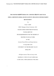 | Name | The foster parent's role on a foster child's care team: does a definitive role and inclusivity influence foster parent retention? |