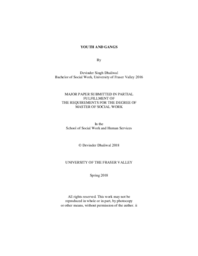 For front-line youth workers in Abbotsford, it appears that the “at-risk” label includes benefits and limitations for youth people. The ways in which youth shed the limitations of this label and its associations with possible gang involvement needed to be examined. Understanding how this label shapes young peoples’ experiences may be one factor in decreasing the number of youth possibly entering into a gang membership. The literature review defines and provides context to our knowledge of youth gangs and captures some risk factors, school responses and gaps in research. The theoretical framework is a combination of Ecological Systems Theory, Labelling Theory and Anti-Oppressive Practice and seeks to assist in developing an understanding of this area of study. The research methodology used an inductive and exploratory qualitative research design. The sample while small in size, was flexible and explored the research topic to gain in-depth additional knowledge about youth and gangs in Abbotsford. This study used semi-structured interviews with key informants in Abbotsford who are working with youth of possible gang involvement. The research will display the findings using a theme analysis along with a discussion and implications of future practice. |