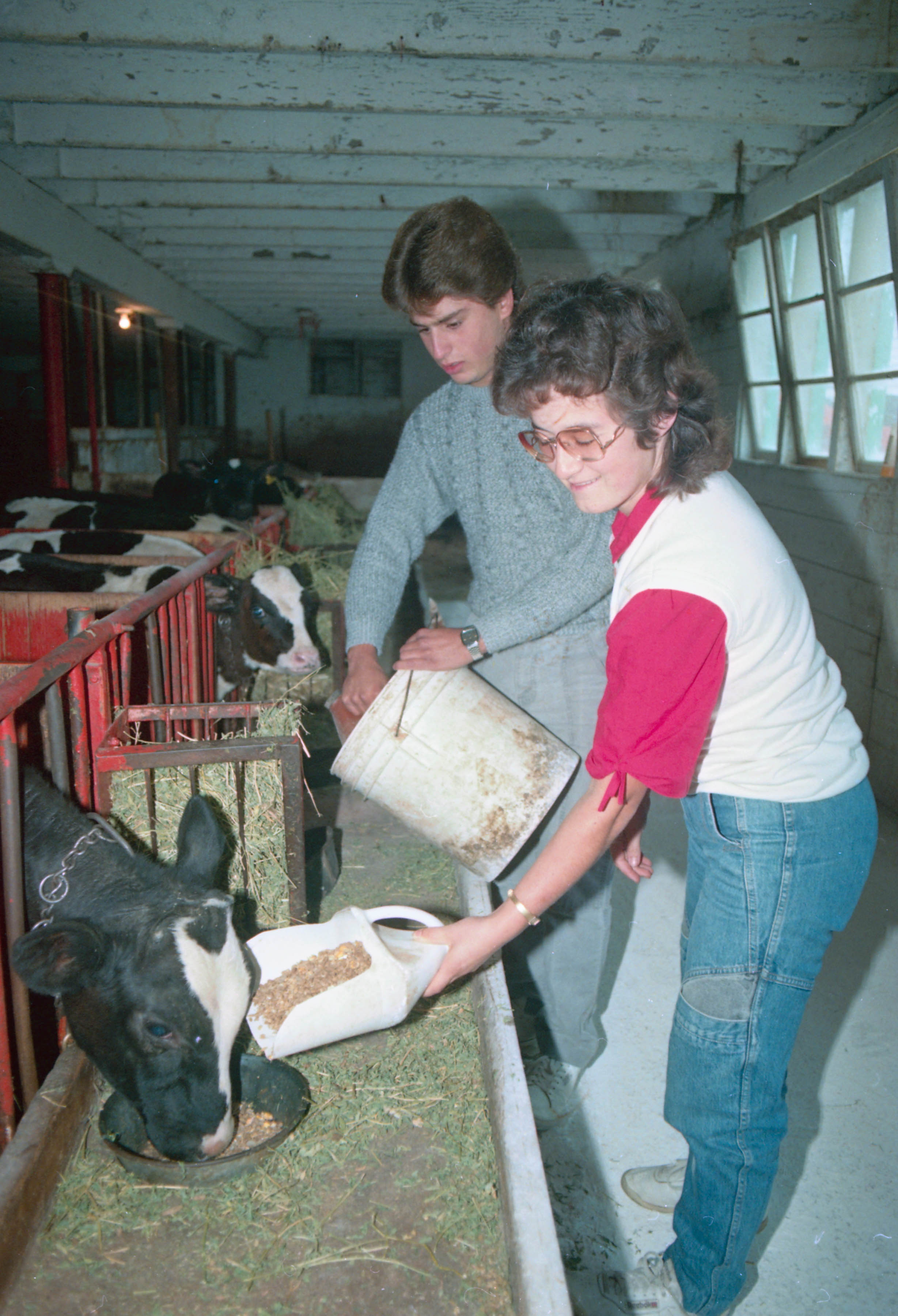 Agriculture Students on Practicum. Ruby Schmitt (later Peterson) and Victor de Sories. 1986. Photographs, 1 negative. UFV Photo Archives. https://ufv-i2.arcabc.ca/ufv-photo-archives/agriculture-students-practicum-ruby-schmitt-later-peterson-and-victor-de-4.