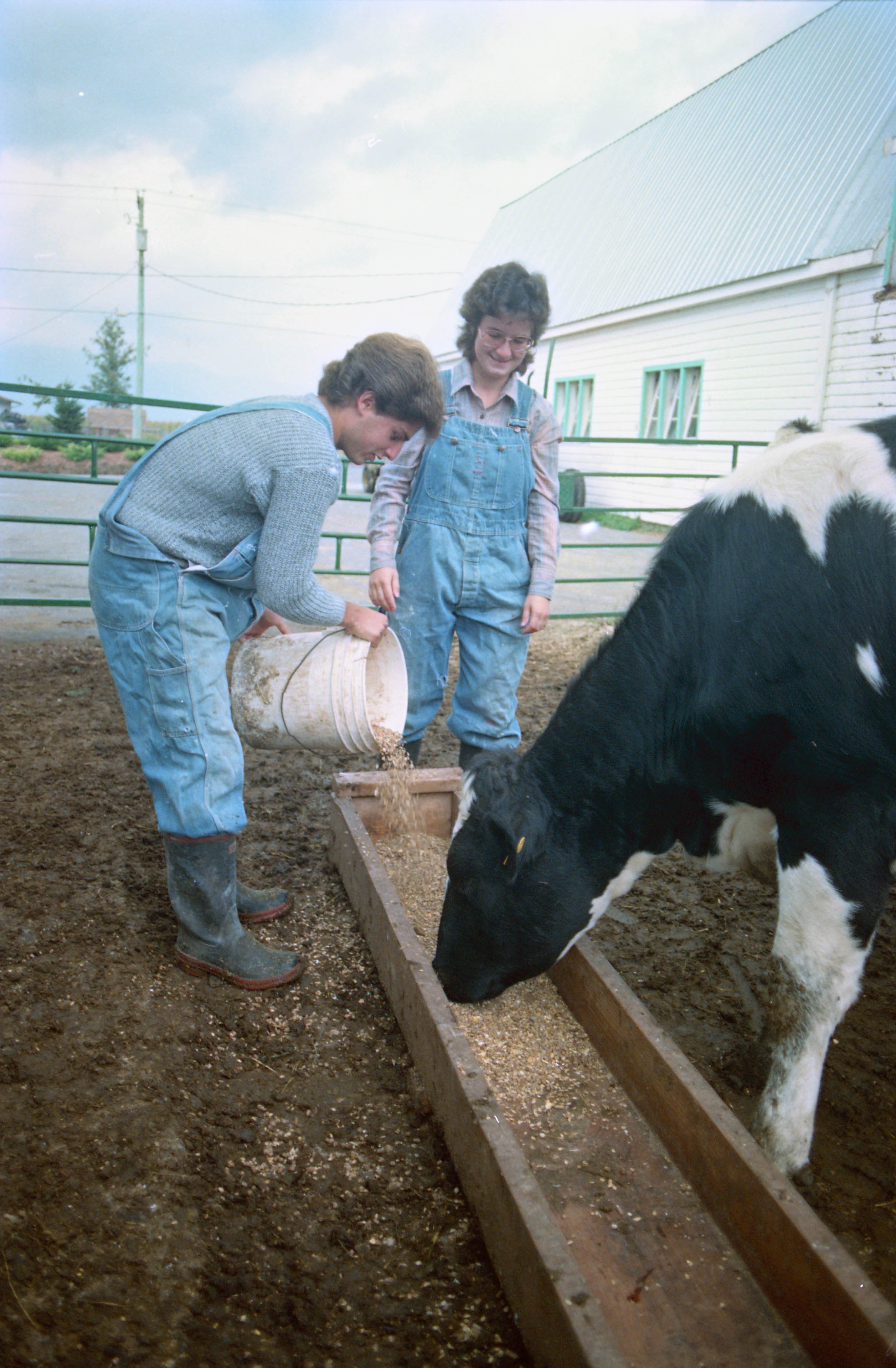 Agriculture Students on Practicum. Ruby Schmitt (later Peterson) and Victor de Sories. 1986. Photographs, 1 negative. UFV Photo Archives. https://ufv-i2.arcabc.ca/ufv-photo-archives/agriculture-students-practicum-ruby-schmitt-later-peterson-and-victor-de-9.