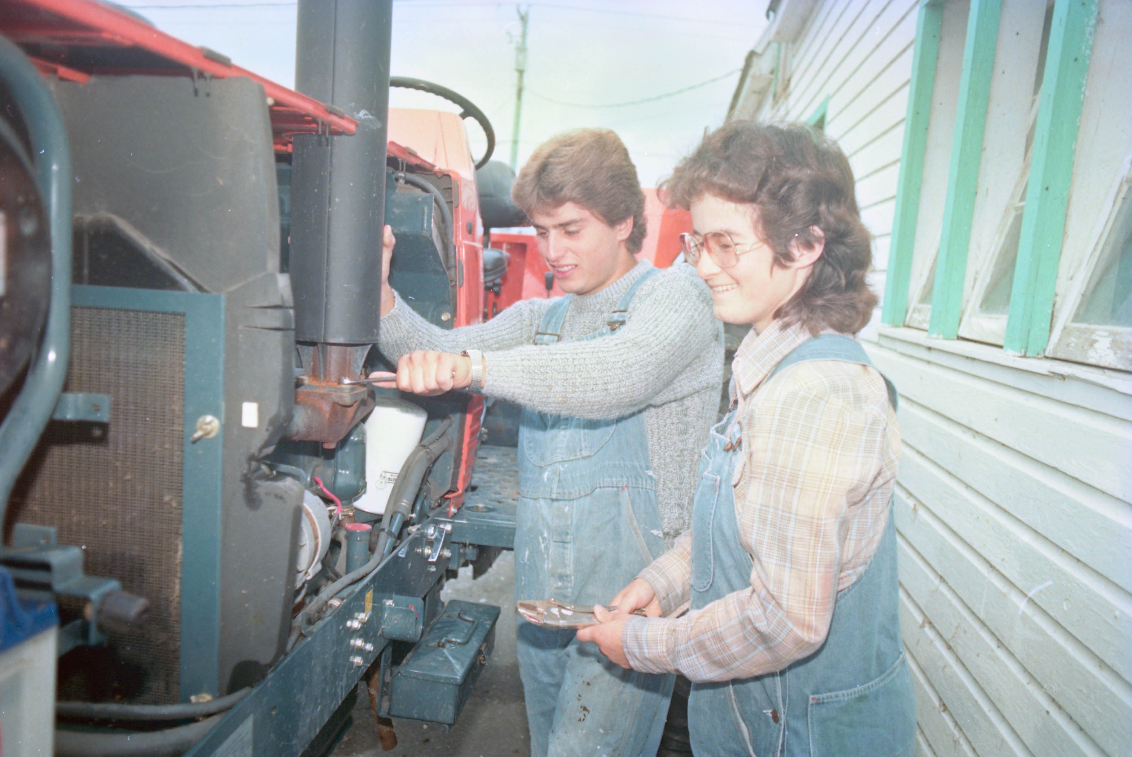 Agriculture Students on Practicum. Victor DeSories and Ruby Schmitt (later Peterson). 1986. Photographs, 1 negative. UFV Photo Archives. https://ufv-i2.arcabc.ca/ufv-photo-archives/agriculture-students-practicum-victor-desories-and-ruby-schmitt-later-peterson-5.