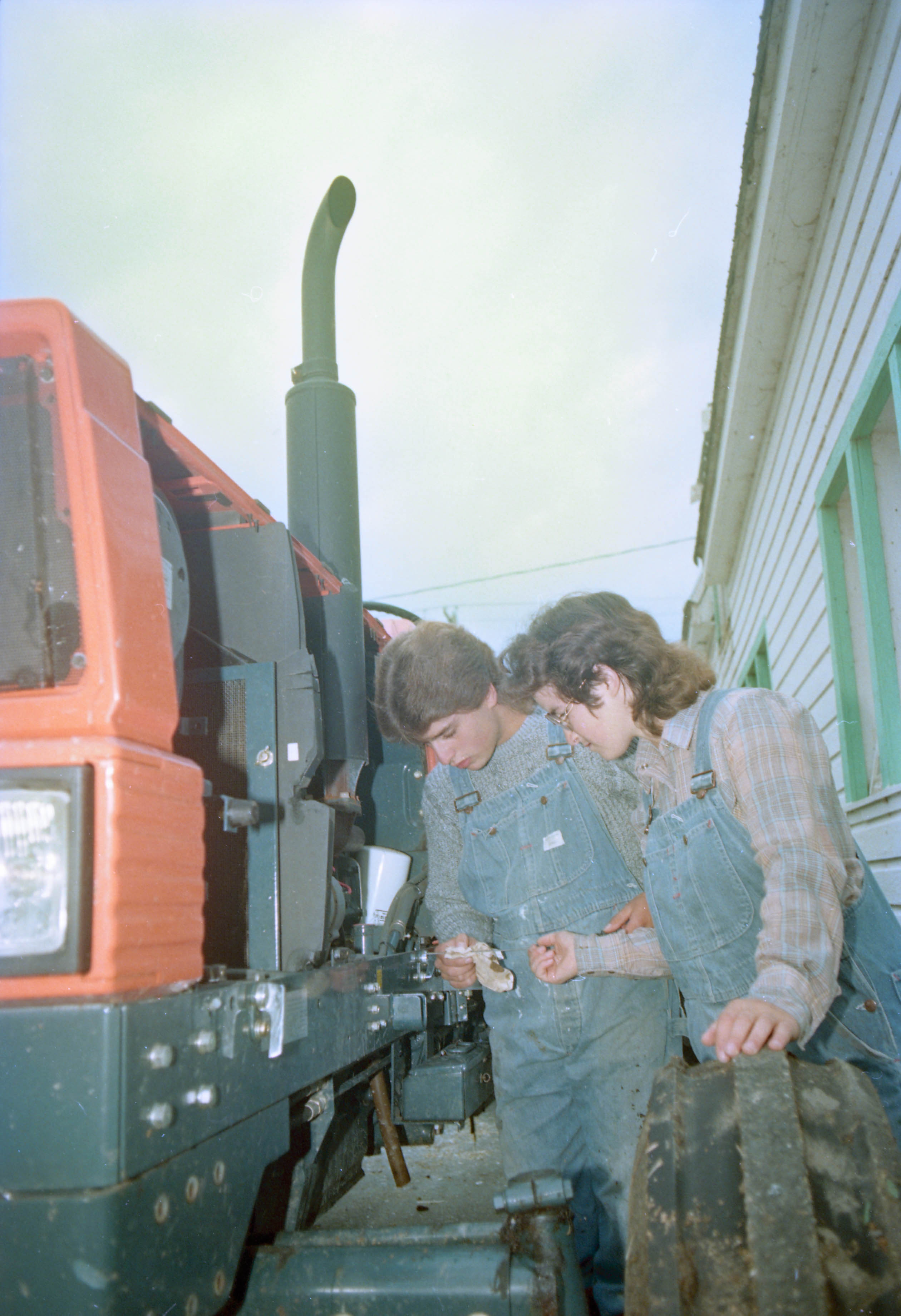 Agriculture Students on Practicum. Victor DeSories and Ruby Schmitt (later Peterson). 1986. Photographs, 1 negative. UFV Photo Archives. https://ufv-i2.arcabc.ca/ufv-photo-archives/agriculture-students-practicum-victor-desories-and-ruby-schmitt-later-peterson-9.