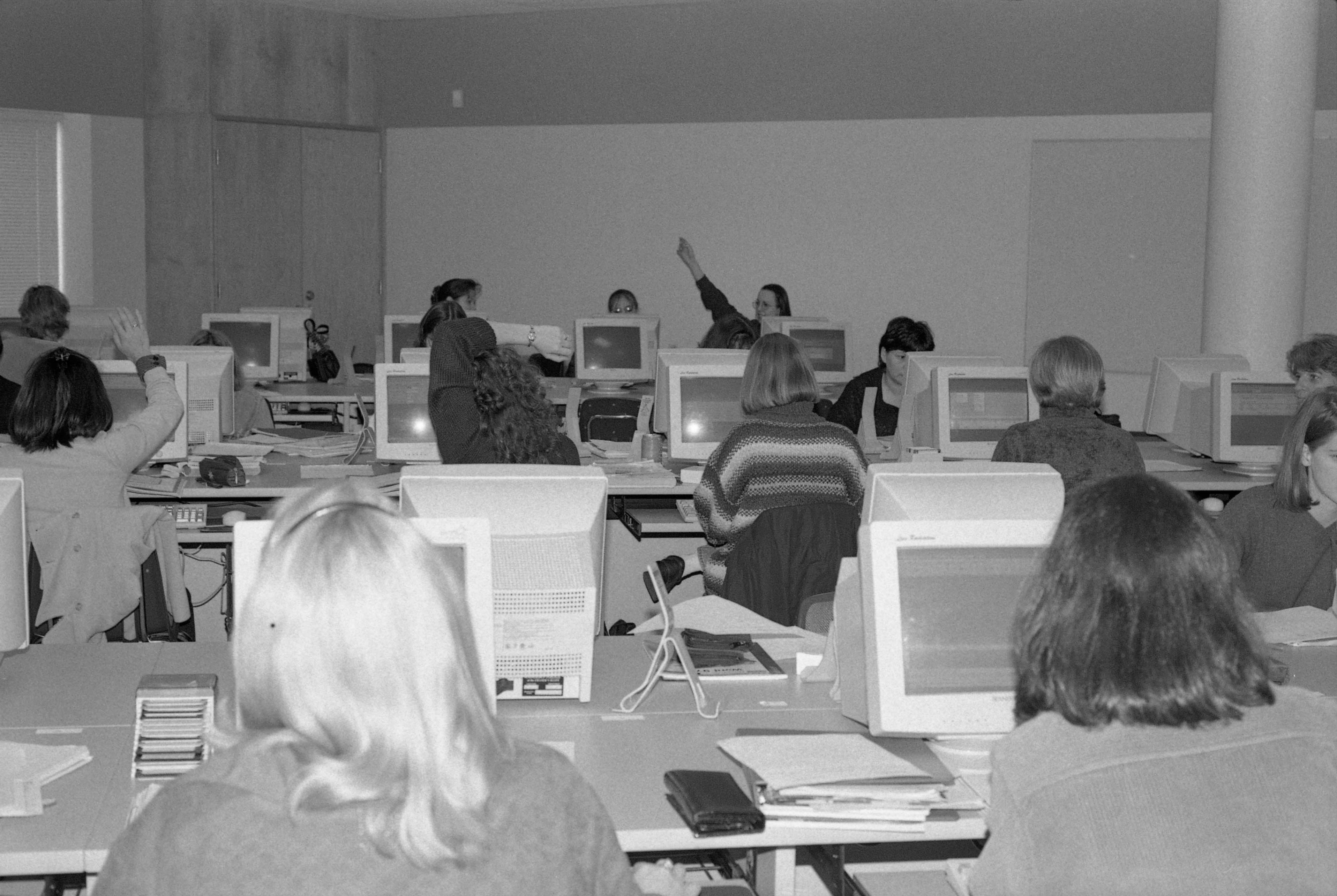Applied Business Tech Students in Computer la. 1998. Photographs, 1 negative. UFV Photo Archives. https://ufv-i2.arcabc.ca/ufv-photo-archives/applied-business-tech-students-computer-la-2.