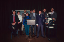A group shot of faculty members: Douglas Hudson (Anthropology), Cheryl Dahl (Media and Communication Studies), Jack Gaston (History), Virginia Cooke (English), Tim Segger (Criminology), Peter Slade (Chemistry), Peter Fuhrman (Business), Gary Karlsen (Inst