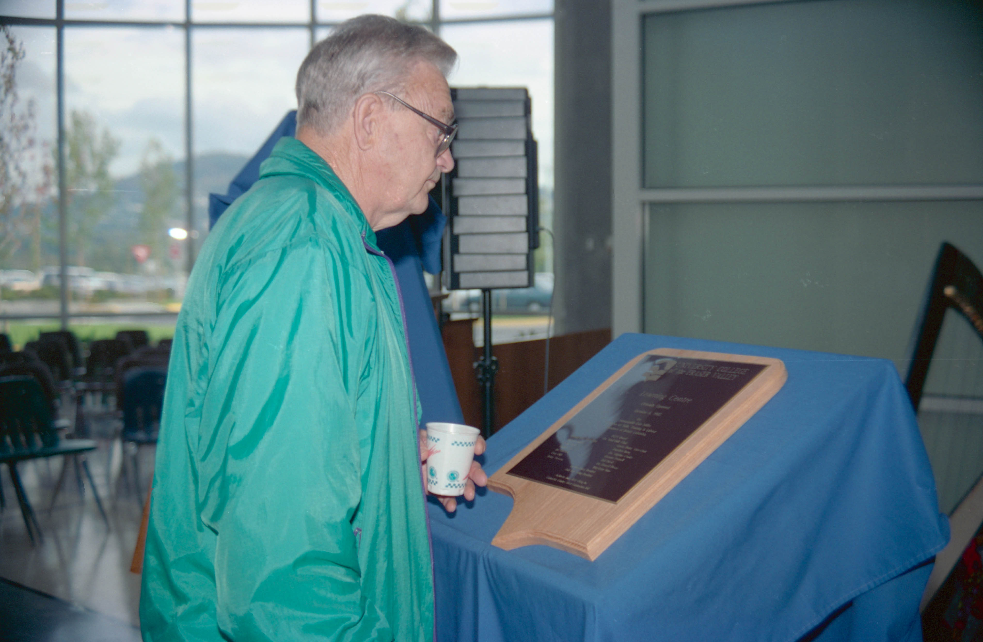 Summary Content type Content type Image Collection(s) Collection(s) UFV Photo Archives Resource Type Resource Type Photograph Genre Genre photographs Origin Information Origin Information Date Created/Date Issued 1995-10 Abstract/Description Description / Synopsis Description / Synopsis A man looking at the plaque at the opening of Building G. Physical Description Extent Extent 1 negative Physical Description Note Physical Description Note Digitized by Taylor Wandfluh Access and Rights Rights Statement Rights Statement IN COPYRIGHT - EDUCATIONAL USE PERMITTED Subjects and Classifications Subject Name Person Subject Name Person Tait, Sandy Subject Name Organization Subject Name Organization University College of the Fraser Valley