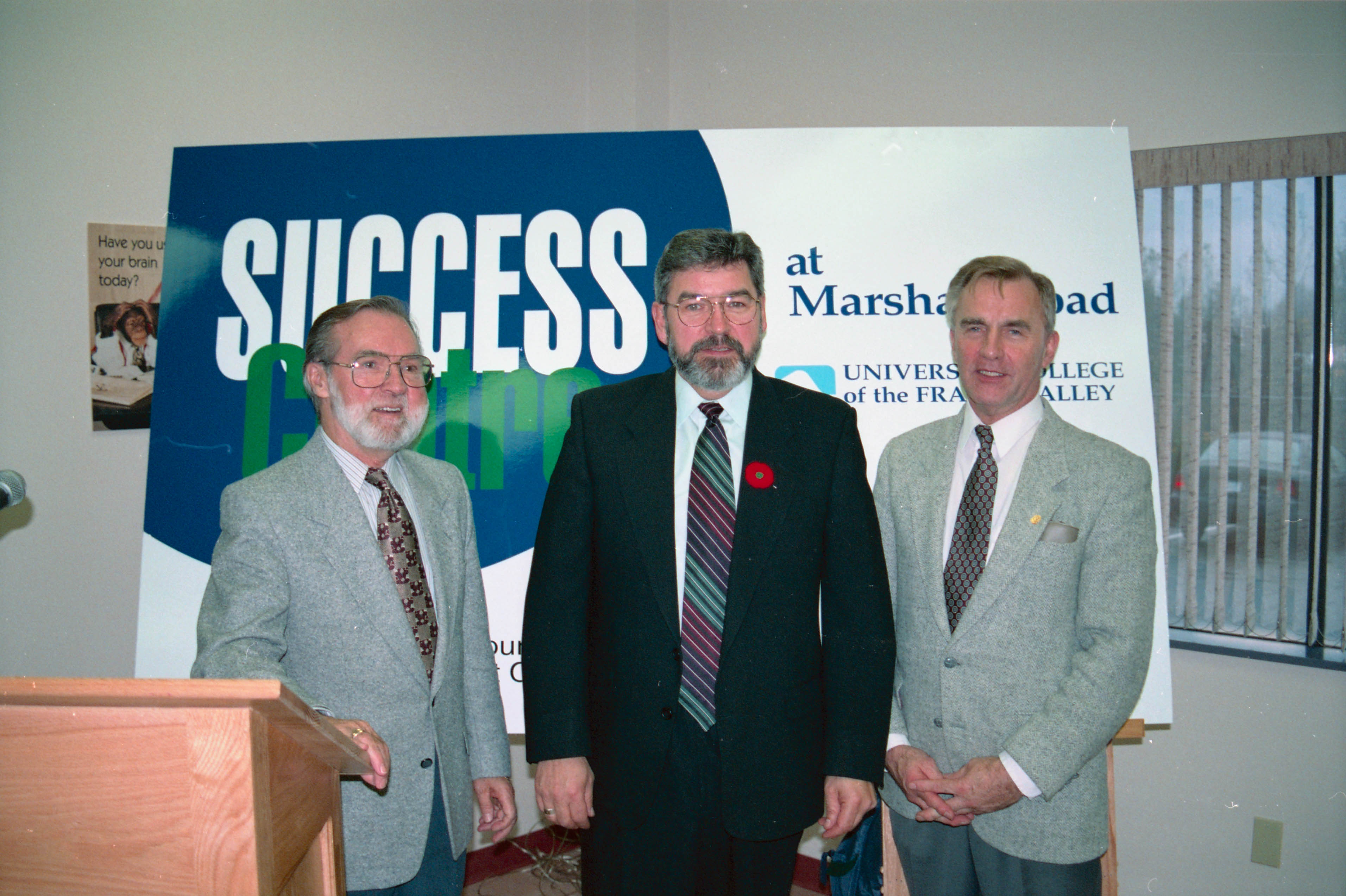 Summary Content type Content type Image Collection(s) Collection(s) UFV Photo Archives Resource Type Resource Type Photograph Genre Genre photographs Origin Information Origin Information Date Created/Date Issued 1997-11 Abstract/Description Description / Synopsis Description / Synopsis Board chair Noel Hall, Mission MLA Dennis Streifel, and UCFV president Peter Jones at Success Centre opening. Physical Description Extent Extent 1 negative Physical Description Note Physical Description Note Digitized by Abigail Taggart Access and Rights Rights Statement Rights Statement IN COPYRIGHT - EDUCATIONAL USE PERMITTED Subjects and Classifications Keywords Keywords Abbotsford, Marshall Road campus Subject Name Organization Subject Name Organization University College of the Fraser Valley