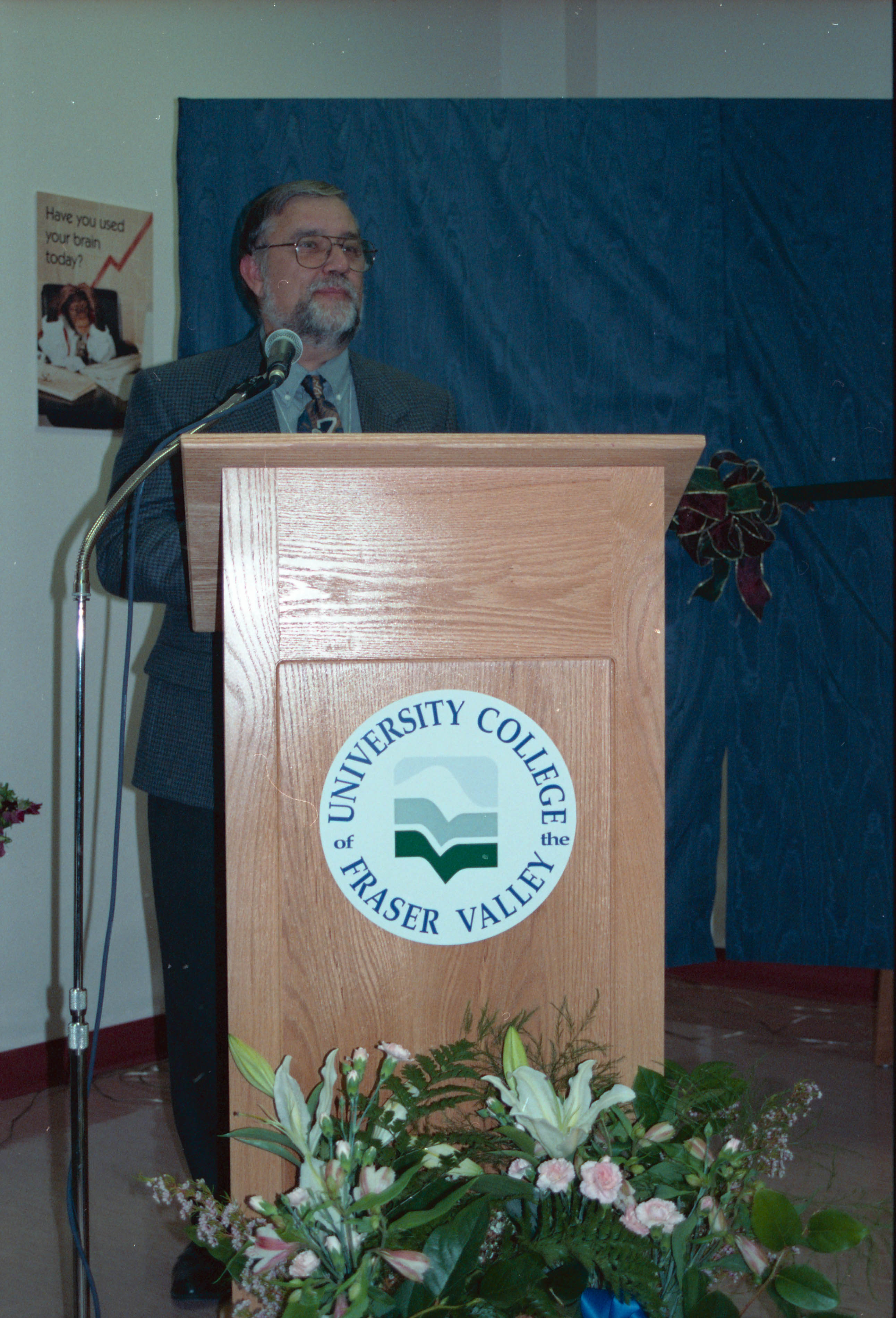 Summary Content type Content type Image Collection(s) Collection(s) UFV Photo Archives Resource Type Resource Type Photograph Genre Genre photographs Origin Information Origin Information Date Created/Date Issued 1997-11 Abstract/Description Description / Synopsis Description / Synopsis Robert Bolton speaking at Success Centre opening. Physical Description Extent Extent 1 negative Physical Description Note Physical Description Note Digitized by Abigail Taggart Access and Rights Rights Statement Rights Statement IN COPYRIGHT - EDUCATIONAL USE PERMITTED Subjects and Classifications Keywords Keywords Abbotsford, Marshall Road campus Subject Name Organization Subject Name Organization University College of the Fraser Valley