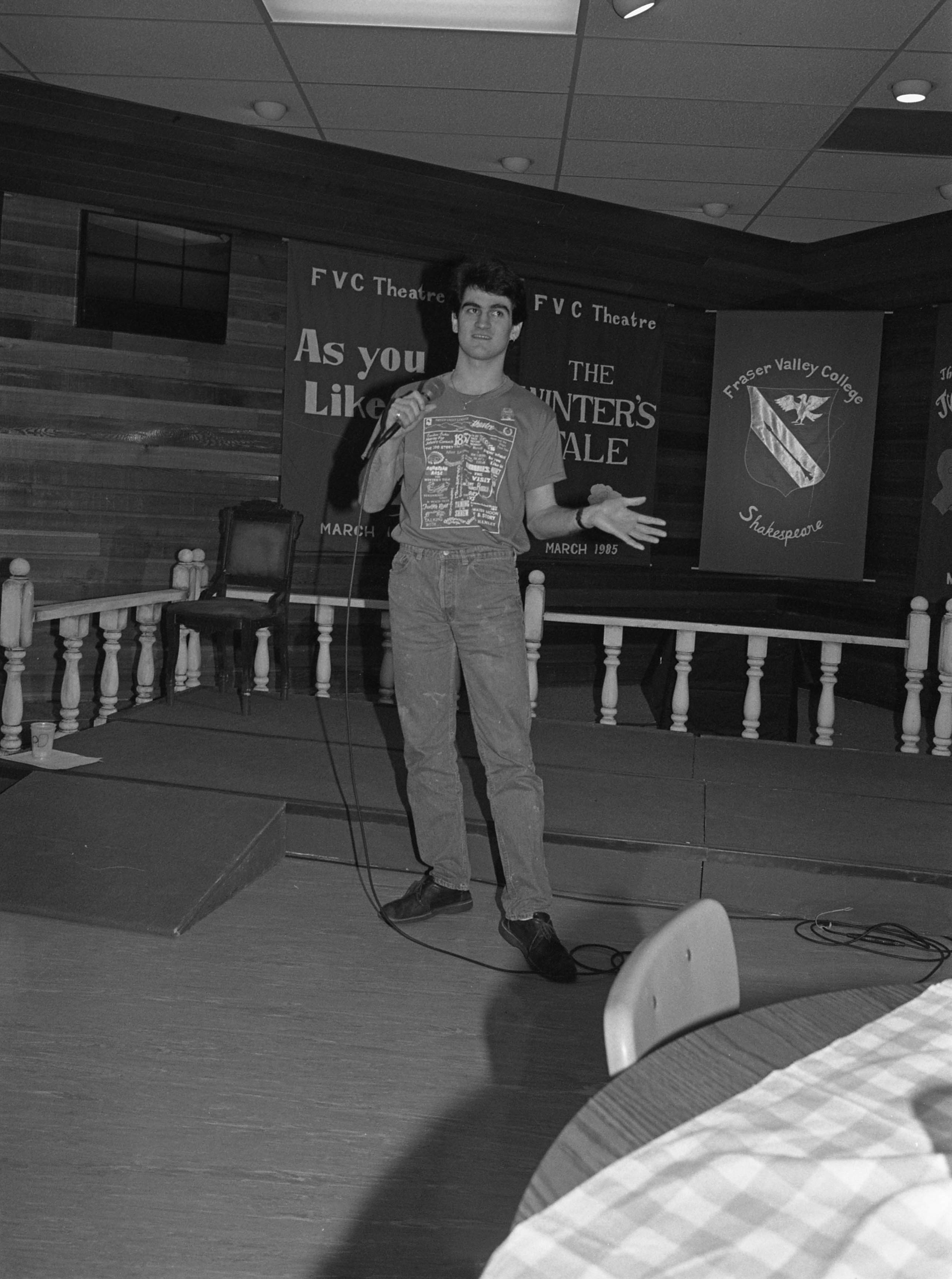 Summary Content type Content type Image Collection(s) Collection(s) UFV Photo Archives Resource Type Resource Type Photograph Genre Genre photographs Origin Information Origin Information Date Created/Date Issued 1990-01 Abstract/Description Description / Synopsis Description / Synopsis Performer at Theatre improv night. Physical Description Extent Extent 1 negative Physical Description Note Physical Description Note Digitized by Taylor Wandfluh Access and Rights Rights Statement Rights Statement IN COPYRIGHT - EDUCATIONAL USE PERMITTED Subjects and Classifications Keywords Keywords Chilliwack Yale Road (former campus) Building A (aka The Motel) Subject Name Person Subject Name Person Tait, Sandy Subject Name Organization Subject Name Organization Fraser Valley College