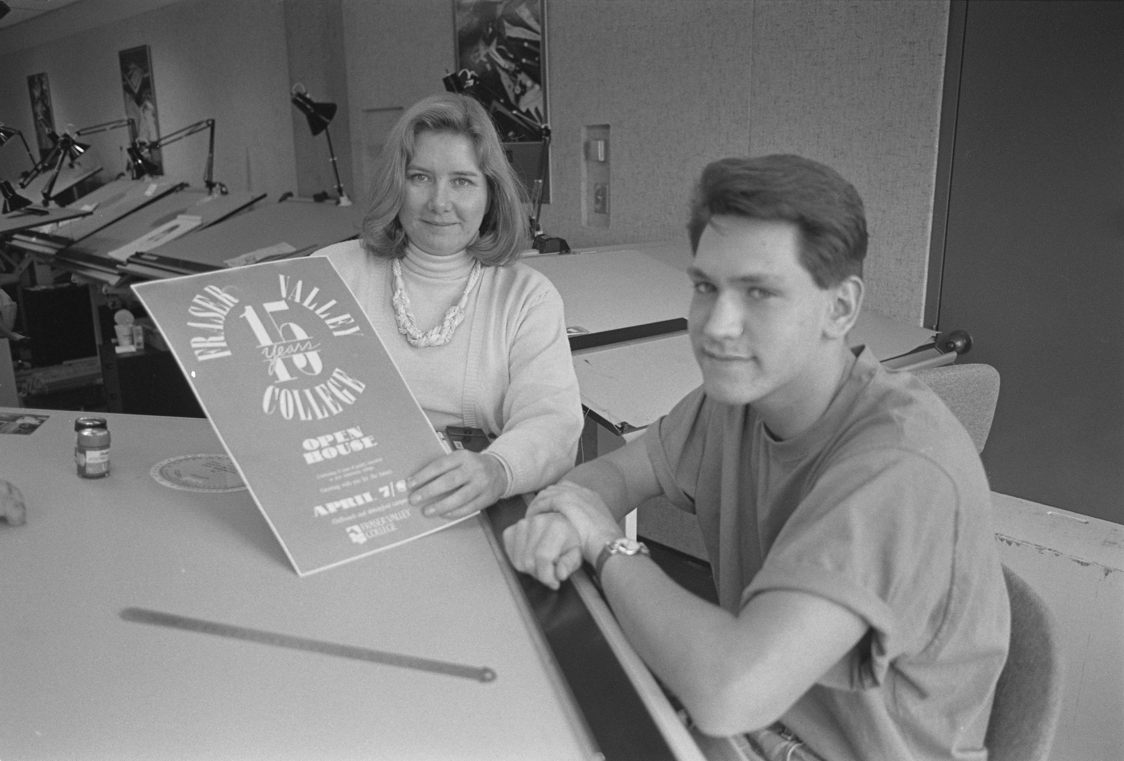Summary Content type Content type Image Collection(s) Collection(s) UFV Photo Archives Resource Type Resource Type Photograph Genre Genre photographs Origin Information Origin Information Date Created/Date Issued 1990-01 Abstract/Description Description / Synopsis Description / Synopsis 1990 open house event coordinator Lee Gillespie and second-year graphic design student Hugh Griffith check out Griffith's winning design for the Fraser Valley College 15th anniversary open house poster. Physical Description Extent Extent 1 negative Physical Description Note Physical Description Note Digitized by Taylor Wandfluh Access and Rights Rights Statement Rights Statement IN COPYRIGHT - EDUCATIONAL USE PERMITTED Subjects and Classifications Keywords Keywords Chilliwack Yale Road (former campus) Building A (aka The Motel) Subject Name Person Subject Name Person Tait, Sandy Subject Name Organization Subject Name Organization Fraser Valley College
