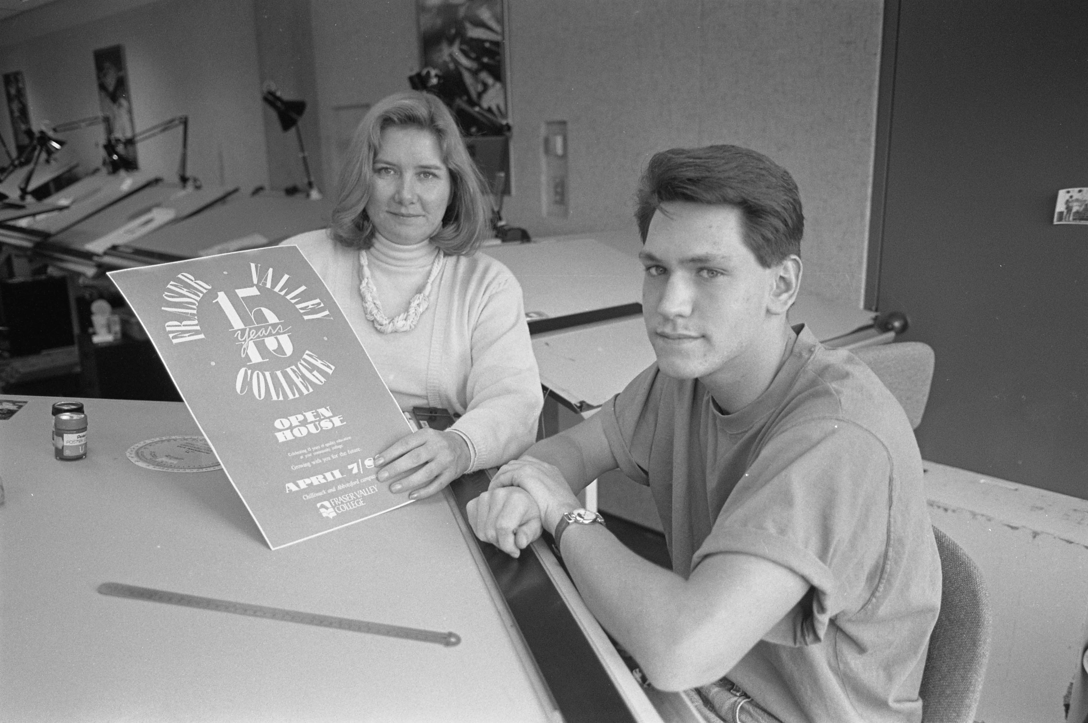 Summary Content type Content type Image Collection(s) Collection(s) UFV Photo Archives Resource Type Resource Type Photograph Genre Genre photographs Origin Information Origin Information Date Created/Date Issued 1990-01 Abstract/Description Description / Synopsis Description / Synopsis 1990 open house event coordinator Lee Gillespie and second-year graphic design student Hugh Griffith check out Griffith's winning design for the Fraser Valley College 15th anniversary open house poster. Physical Description Extent Extent 1 negative Physical Description Note Physical Description Note Digitized by Taylor Wandfluh Access and Rights Rights Statement Rights Statement IN COPYRIGHT - EDUCATIONAL USE PERMITTED Subjects and Classifications Keywords Keywords Chilliwack Yale Road (former campus) Building A (aka The Motel) Subject Name Person Subject Name Person Tait, Sandy Subject Name Organization Subject Name Organization Fraser Valley College